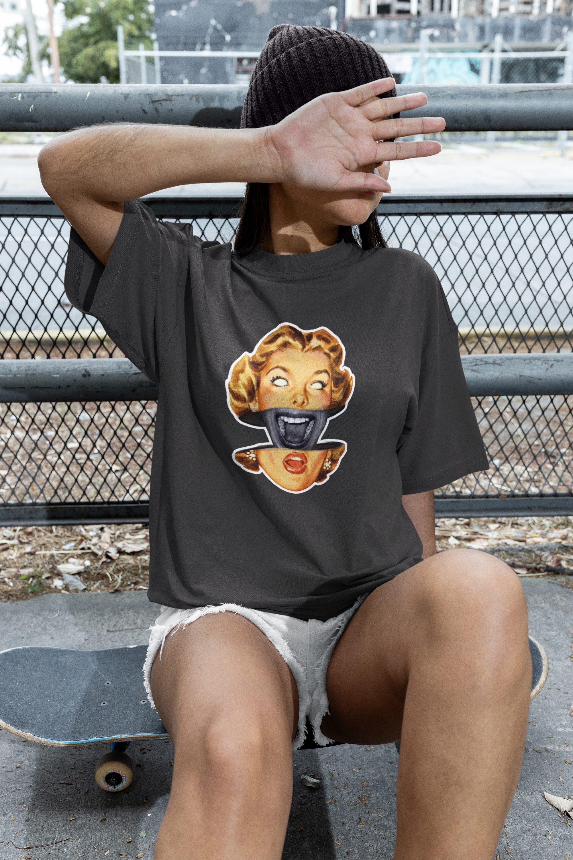 • Boxy, oversized fit